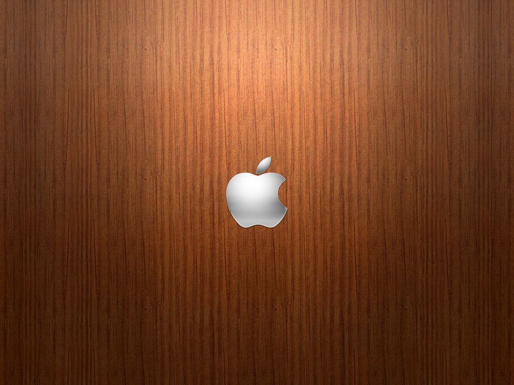 Silver Apple on Wood Background Wallpaper For iPad | ||